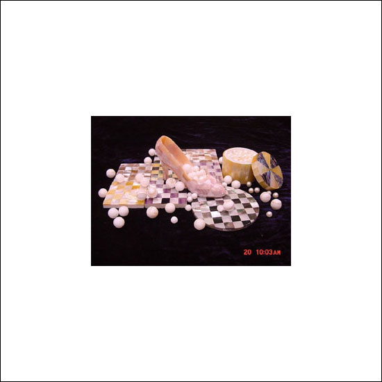 Our shell nucleus are wholely made by Mississippi River shell. We provide all grades and sizes from 1.5 bu to 6.0 bu. For mother of pearl carving, our artists establish a new item: high heel shoe. It could be made by many kind of shell in different colours. The one in the picture is a pink high heel shoe with 3.5 inches. Besides, we are promoting M.O.P. Tile in two sizes: 50mm x 50mm and 152mm x 152mm. We could do all other patterns, sizes and shapes upon request.