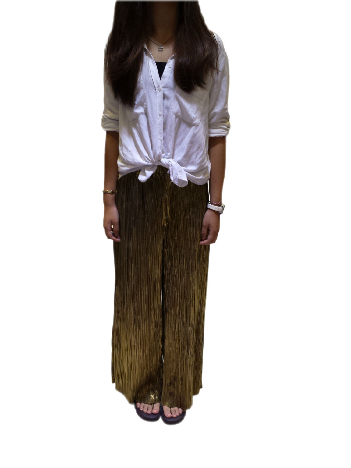 - Pleated wide leg pants: length: 101cm, waist: 31 cm.