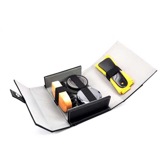 This shoe brush set comes with brushes, polishing tools and so on. The button closure container allows you to store the accessories neatly. This shoe brush set is a nice companion to polish and maintain your high-end shoes.