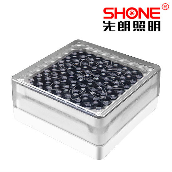 Featured here is a solar LED brick light in a square shape. It is equipped with multiple LEDs and is adorned with a flower pattern on the cover. This solar LED brick light offers bright and stable illumination and is suitable for places with direct sunlight, like squares, paths, gardens etc.