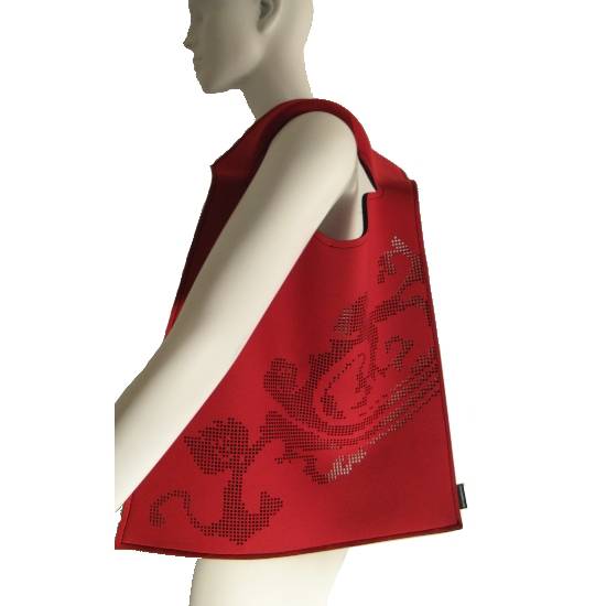 This evolutionary shopping bag features a unique shape and cutting that will definitely make a stylish impression. Its over-sized design allows you to carry a large number of items and always comes handy for the occasional shopping spree. The printed slant pattern creates an artistic flair to the bag.