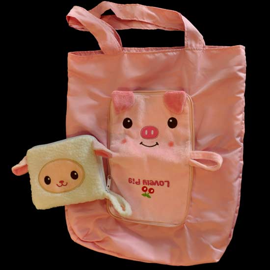 Showcased here is a cute shopping bag that is made of fabric material. This excellent shopping bag has a pig-shaped design. This simply is the ideal shopping bag for ladies.