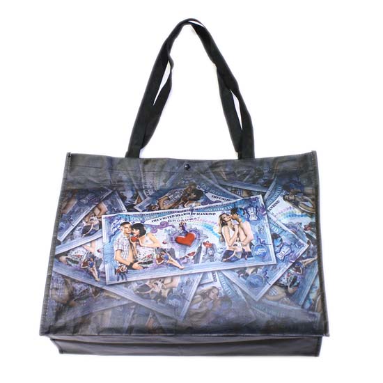 Showcased is a nice shopping bag coming with allover prints. The prints come in sharp colors and with a matte finish for long-lasting beauty. The roomy interior offers great convenience for shopping.