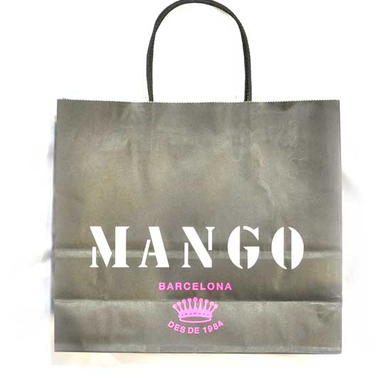 The stand-up paper bag shows an eye-catching printed logo for maximized promotional effects. The sturdy construction ensures lasting use. This paper bag is a great choice for boutiques for merchandise packaging.