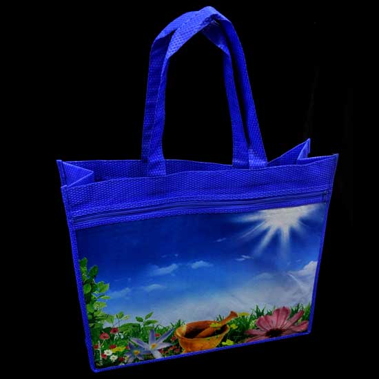 This pictured shopping bag is printed with vivid colors for an eye-catching look. The bag comes with a zipper closure to keep your belongings safe. The PP non-woven structure offers extra durability.