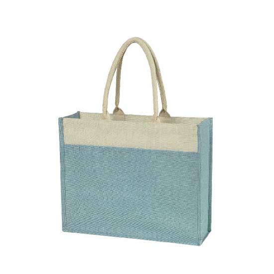 This fashionable shopping bag features a white and sea blue toned appearance for a contrasting touch. It is made of natural fiber fabric for long time performance. This rectangular shopping bag is suitable for promotion or use in a beach.