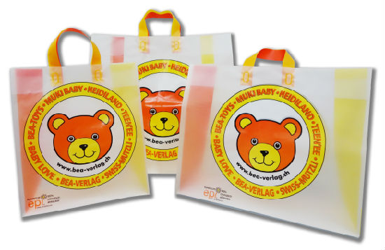 This shopping bag is made of EPI material and has soft loop handles for carrying. It is rectangular shaped and is decorated with brand logo on the exterior. The lovely and functional shopping bag comes in a variety of sizes and is suitable for packaging all kinds of products.
