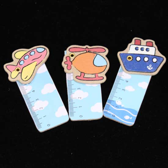 Showcased here is a collection of bookmarks with a cute transportation theme. The cartoon airplane, helicopter and ship make a perfect match with the blue-sky patterns. These lovely bookmarks serve as a ruler as well.