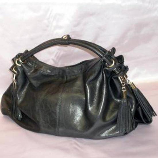 The ladies' handheld bag comes with pliable material. The gold tone grommets and tassels along the dual handles make it stand out from the rest. This roomy bag is both fashionable and functional.