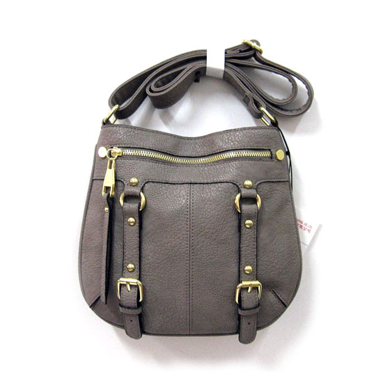 This is a shoulder bag made of durable PVC material. The golden parts add a sense of elegance to this gray bag. This bag comes with a zipped side pocket for storing small items.