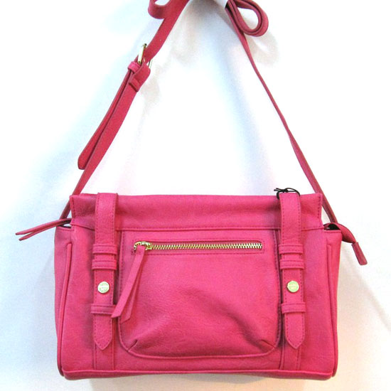 This shoulder bag features a rectangular body with a back pocket. Its strap can be adjusted into a fitting size. This bag is designed in bright pink for adding a bit of color to your look.