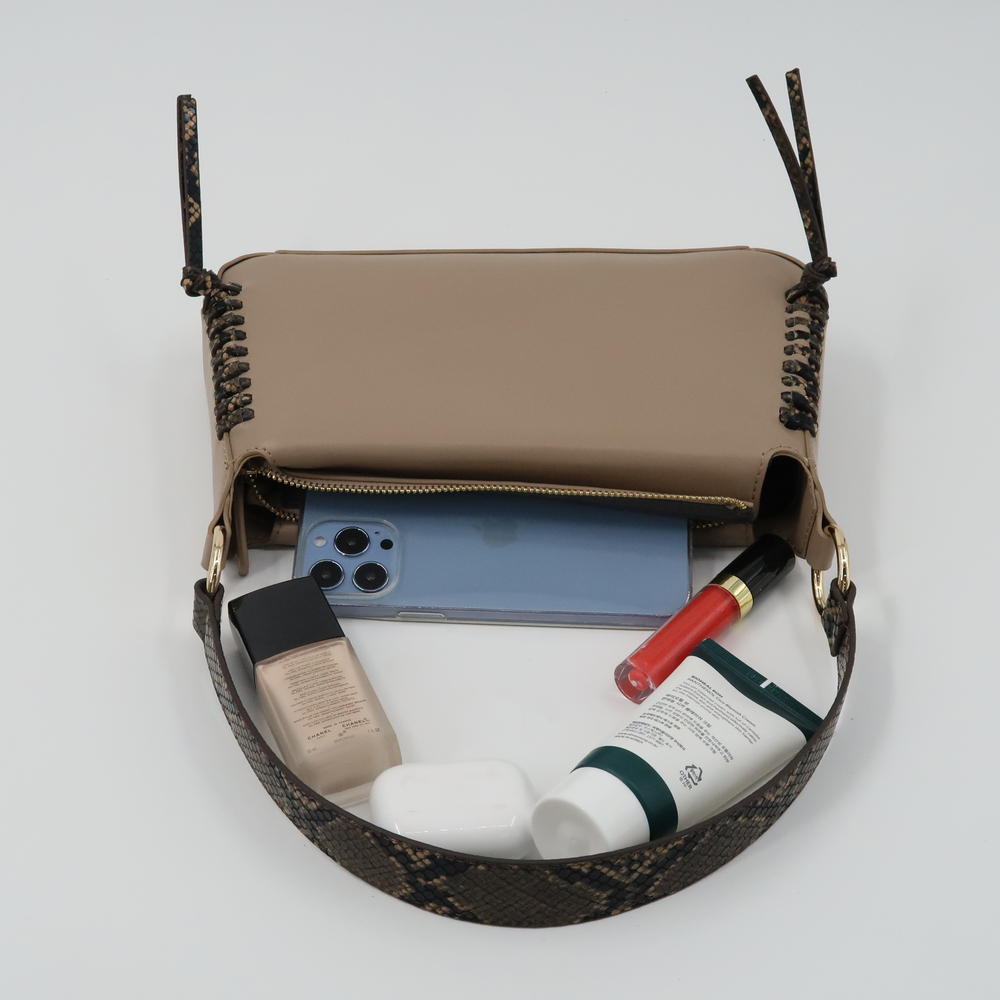 Shoulder Bags For Women Elegant Feminine Mini HandBags With Zipper Closure Taupe