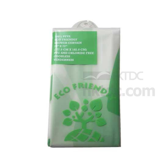 This is a transparent shower curtain with green-colored patterns. Made of PEVA, this shower curtain is an eco-friendly choice. This high quality shower curtain is also easy to install.