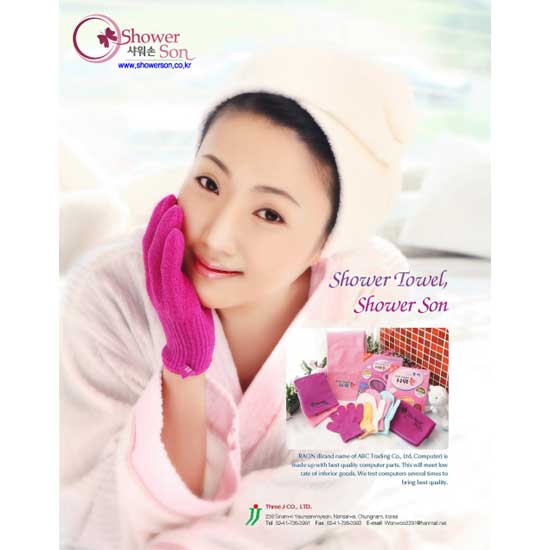 Shown here is a pair of shower gloves in a magenta color. The quality construction offers a comfy hand feel. This pair of shower gloves is durable and easy to wash.