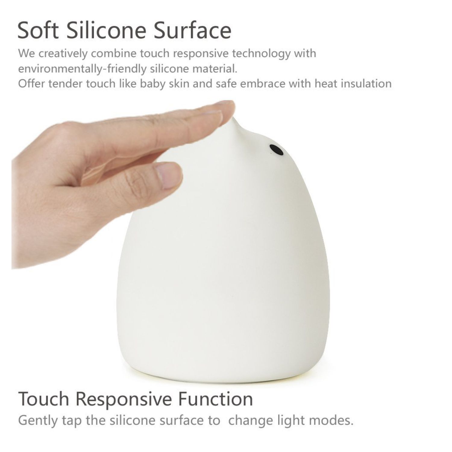 Tap the silicone surface to switch to automatic 7-color breathing mode, standby mode and then back to normal white light mode successively;