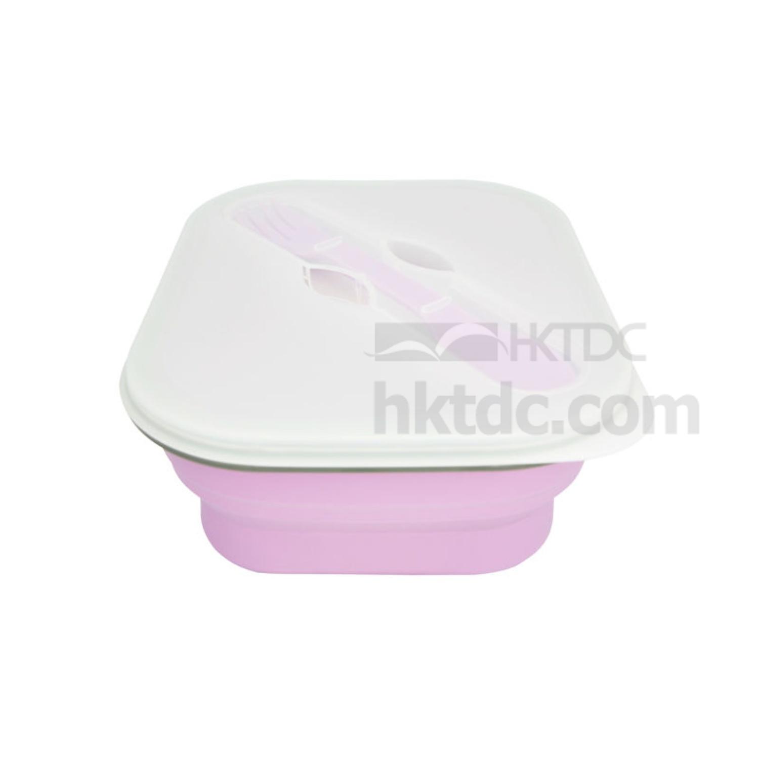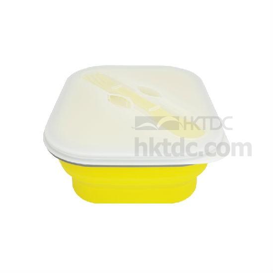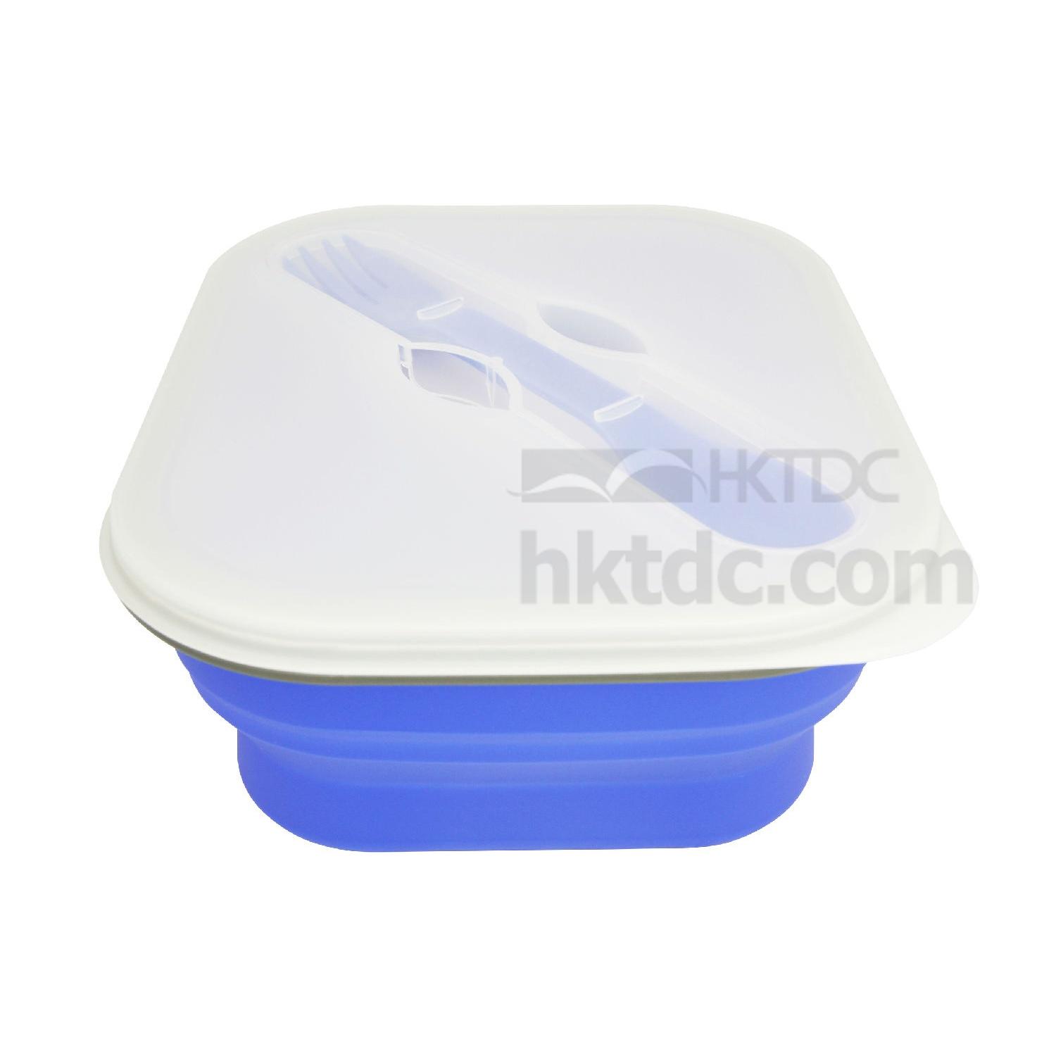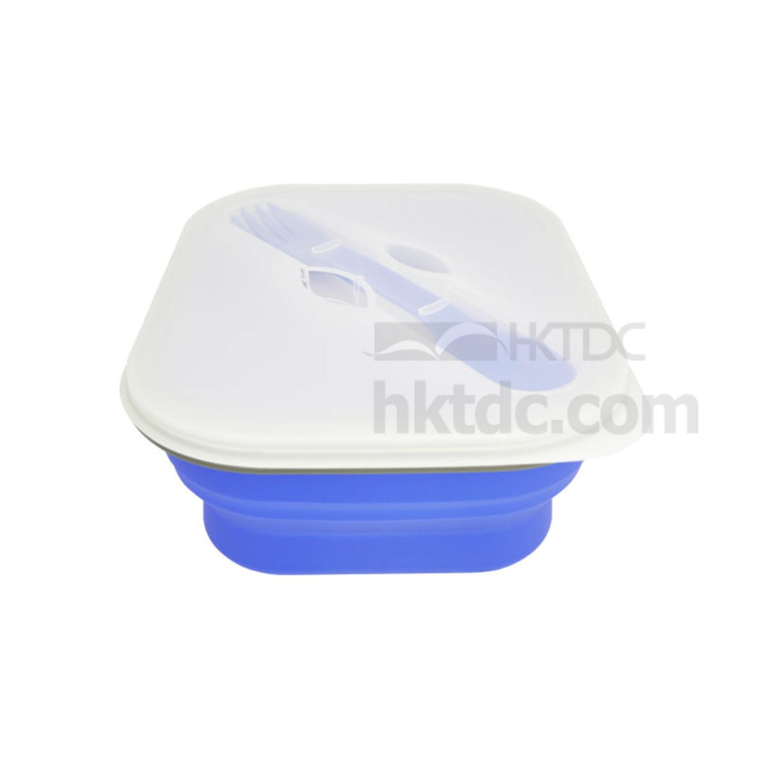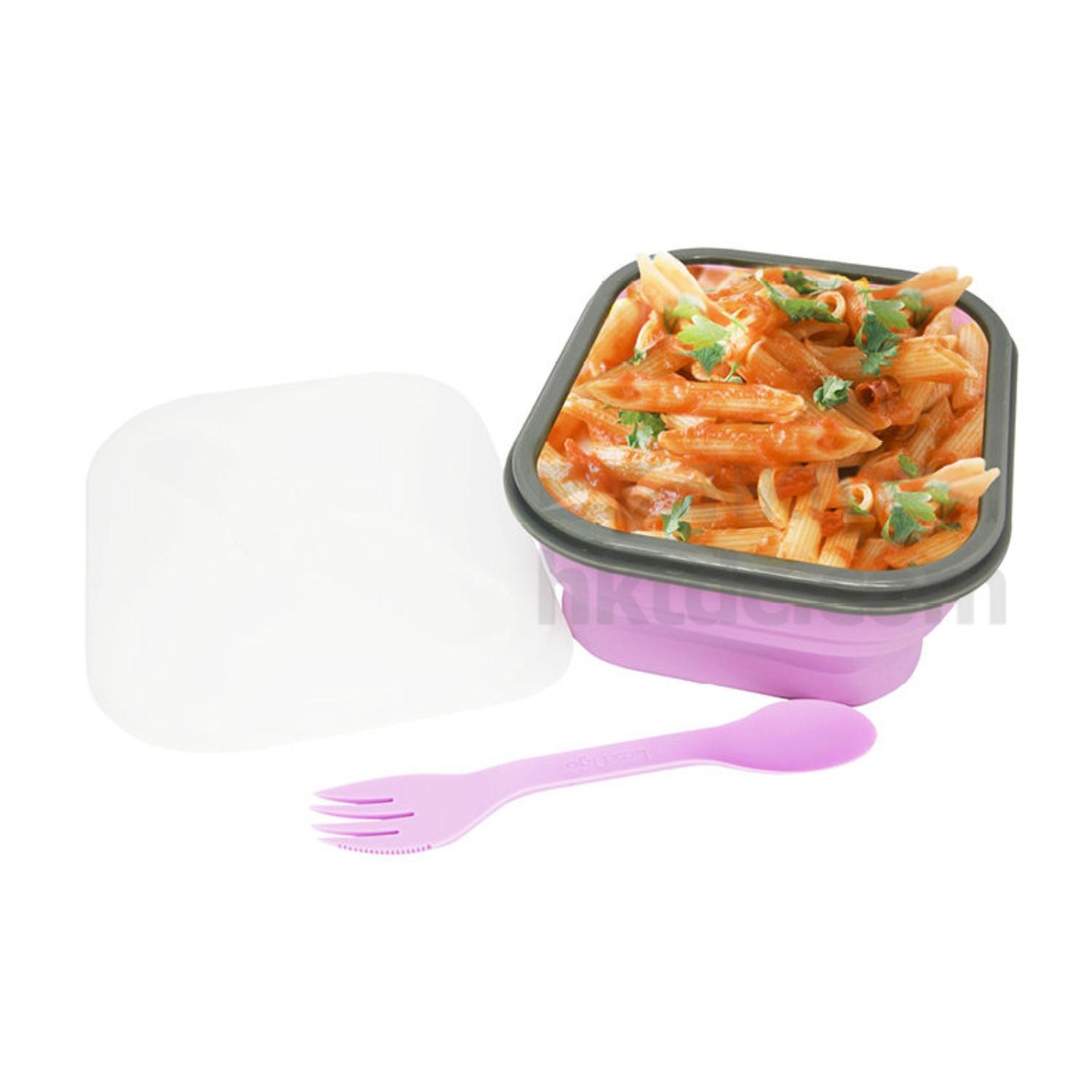 Made of food safe silicone this noodle box is perfect for transporting healthy meals or food storage. The unique 3 in 1 spork utensil conveniently stores inside the air tight cover. For space saving storage, simply collapse the flexible silicone container to 1/2 its size.