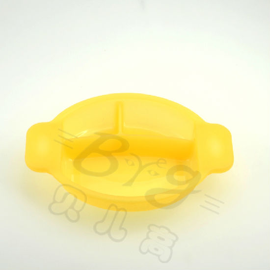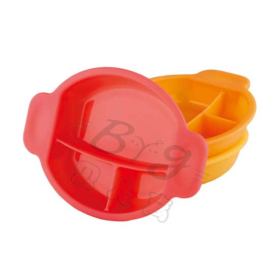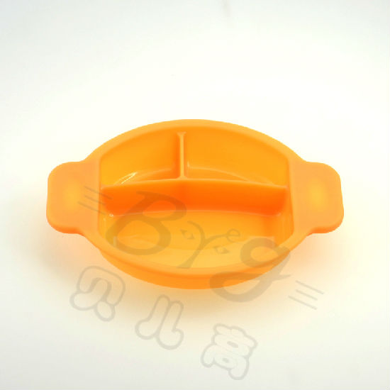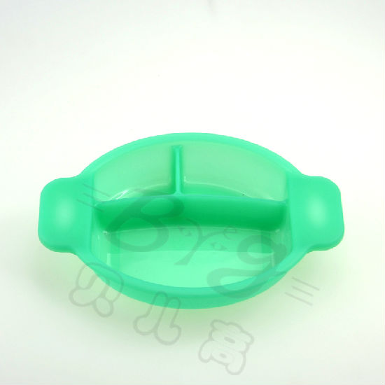 This three-part plate is made of 100% food grade silicone, which is safe for baby's eating. It is microwave and dishwasher safe. The two sides are crafted with handles with dents for easy holding.
