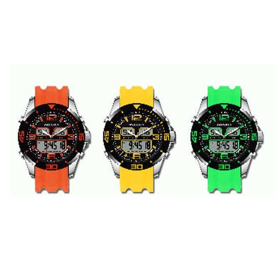 This is a digital-analog watch with a silicone watch strap. This double-movement watch comes with three hands and Arabic numeral hour markers for easy time reading. This silicone watch is an ideal choice to complete your outfit.