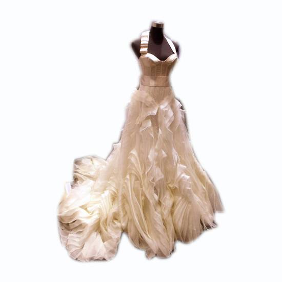 The featured bridal dress is the best choice for your big day. It has a halterneck design and is perfect for matching with diamond or gemstone necklaces. The dress has a belt so the wearer can look slim.