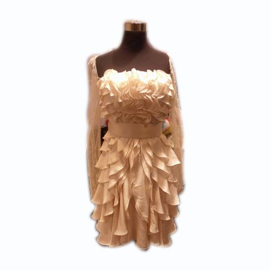 Shine in any party in the featured evening dress. It comes with lantern lace sleeves which are see-through and adorned with Swarovski crystals. The dress is ruffled and comes with a belt.