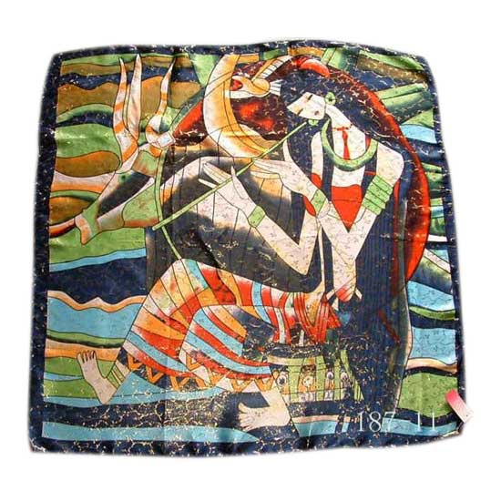 The highlighted silk handkerchief is printed with an image of an exotic lady with tranquil beauty. The colorful construction makes this handkerchief appealing and eye-catching. This handkerchief makes a brilliant gift idea for your friends and family.