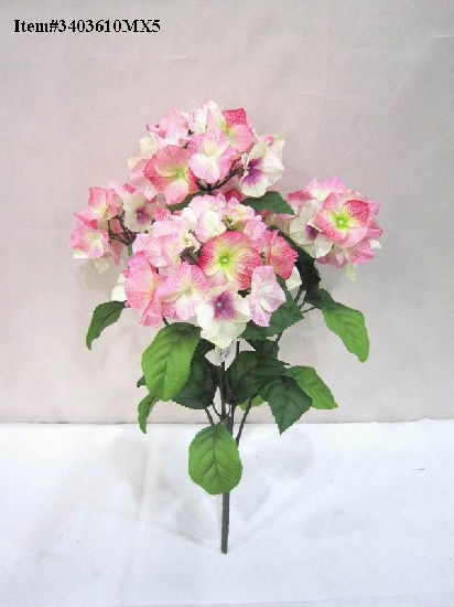 Highlighted here is a bunch of five synthetic hydrangea flowers. The flowers are made in a blend of white and pink colors that assemble the mesmerizing character of the spring season. Made from superior silk, these flowers will look incredibly fresh and glamorous for years in your favorite planter or cache pot.