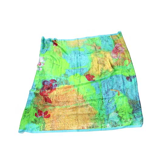 This is an attractive scarf with delicate prints in bright colors. This eye-catching scarf is made of quality silk for a comfortable touch. This chic silk scarf is an ideal choice for fashionable ladies.