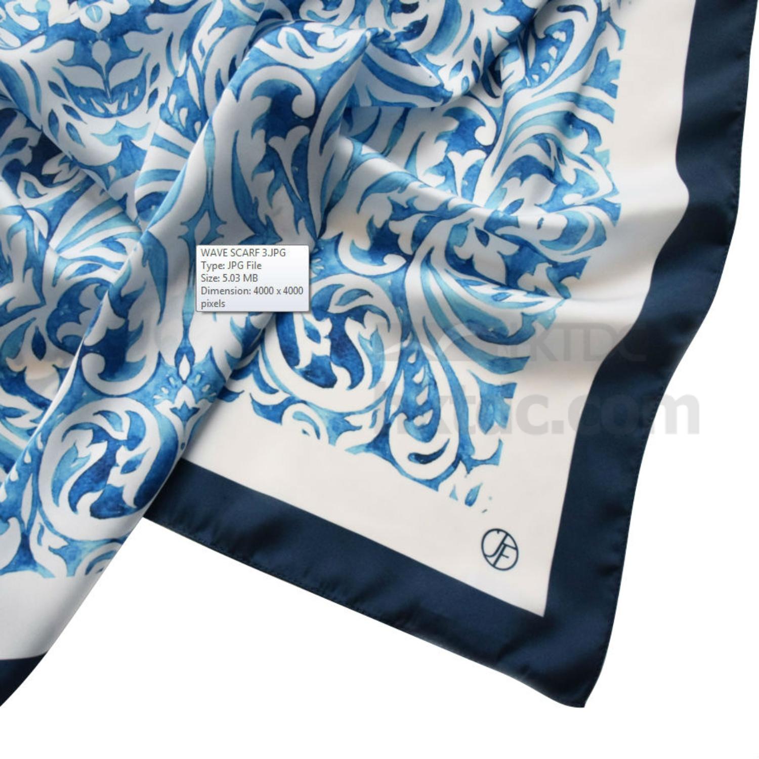 The wave-inspired patterns of this silk scarf steeps in a wide range of blue, wrapping your neck with sumptuous comfort. Its lightweight and square silhouette further guarantees versatile styling, urging a sophisticated look that transcends through seasons.
