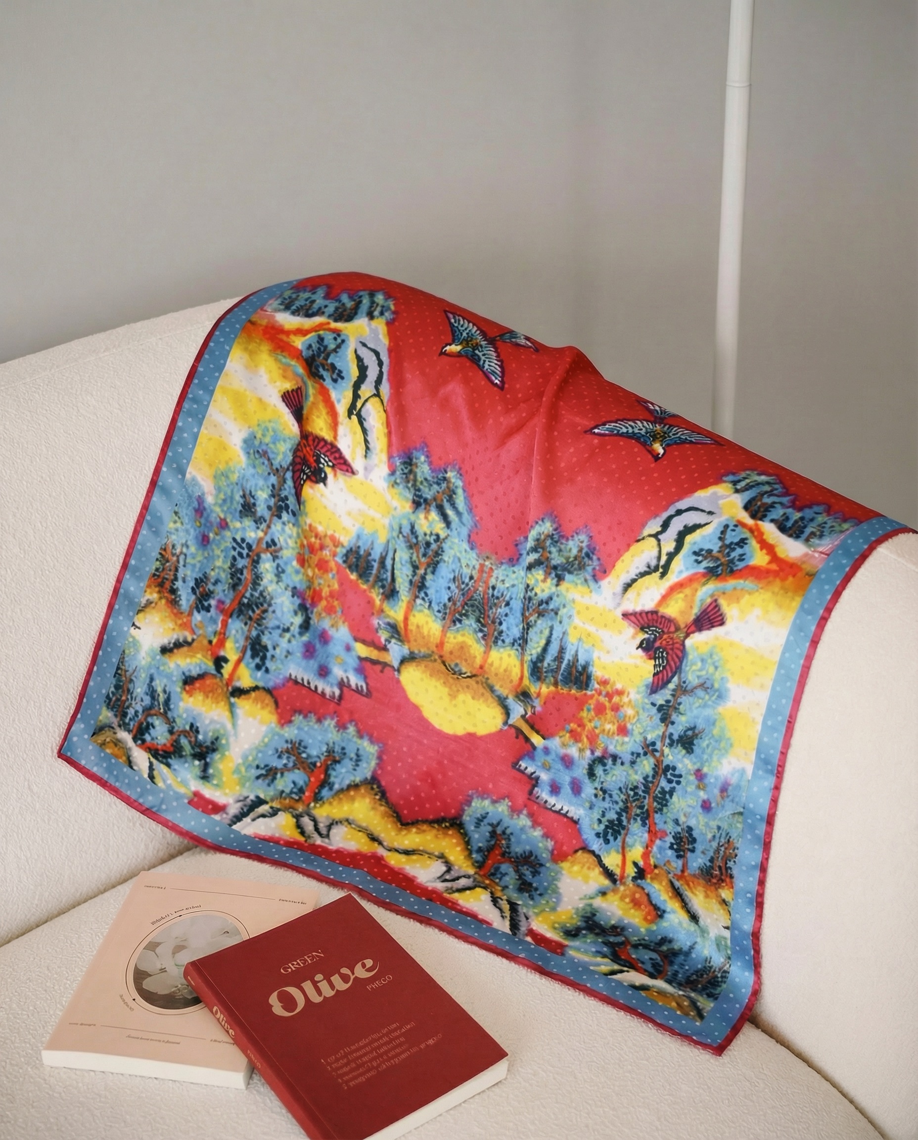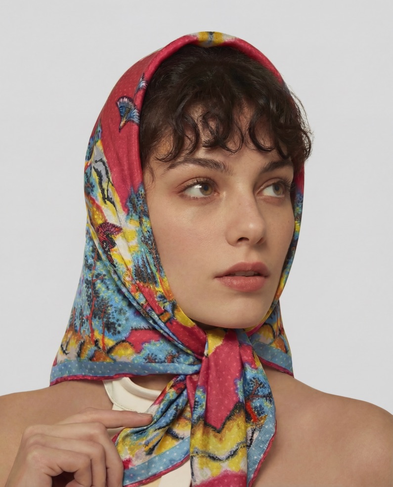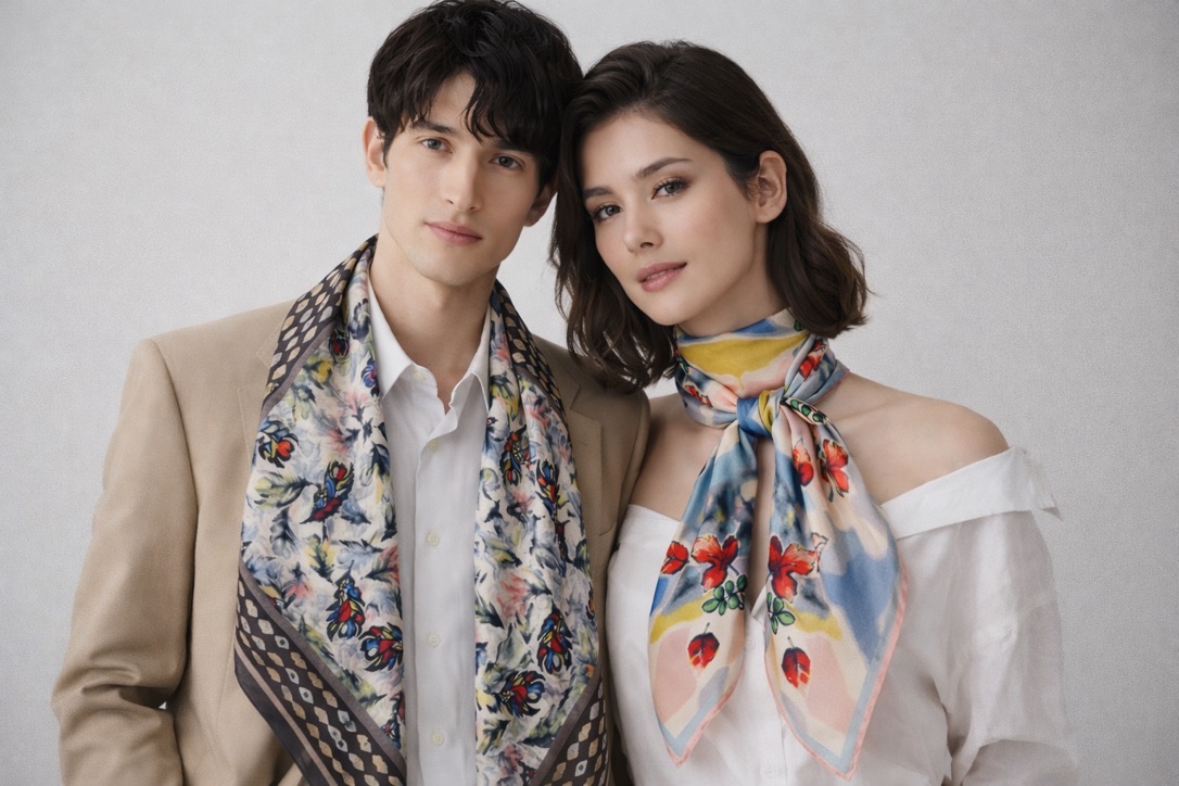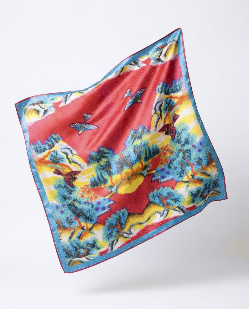 Through digital archiving and modern textile technology, we revive these vibrant historical patterns and reinterpret them into elegant silk scarves for modern life.