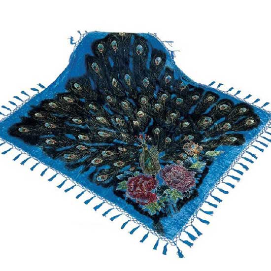 This gorgeous square scarf is beautifully made in multi colors and accented by lifelike peacock embroidered details. This gorgeous fashion scarf is light weight and feminine in style. The blend of silk and rayon construction ensures an extremely soft hand touch on your skin.