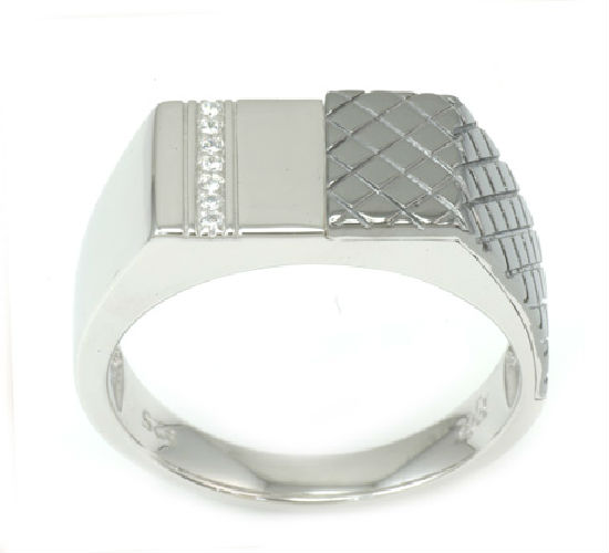 SILVER AND ZIRCONIA GENTS RING 7gm 7CZWH RDBR 1.1mm (RH & BRH)