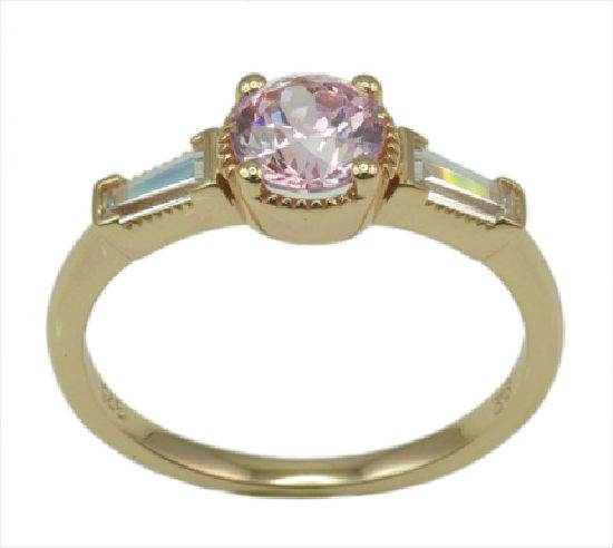 SILVER AND ZIRCONIA RING 2.10gm 1CZPI RDBR 6mm (65cut) 2CZWH TPST 5X2.5X1.8mm ( RHR )