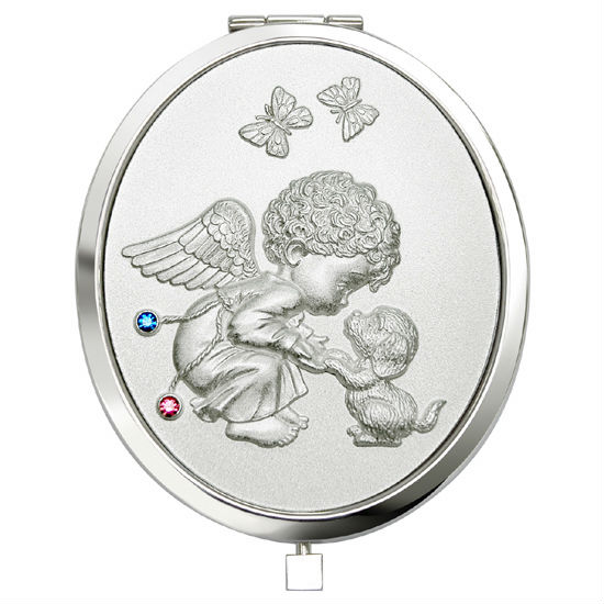 Silver Angel and Puppy Compact Makeup Mirror Case