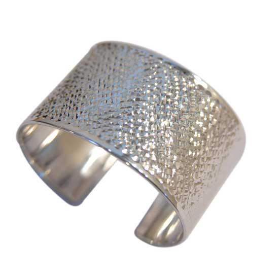 Highlighted is a silver bangle with shimmering diamonds. It is finely made with exquisite craftsmanship and attention to details. Enhance your style with this exotic silver bangle.