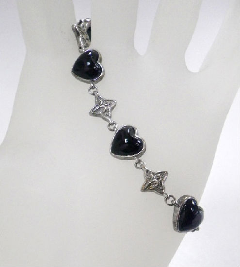 The highlighted charm bracelet oozes style and sophistication with heart and four-point star charms in silver-tone finish. The dark coloring of the black agates on the heart charms creates a striking visual contrast to spice up the design.