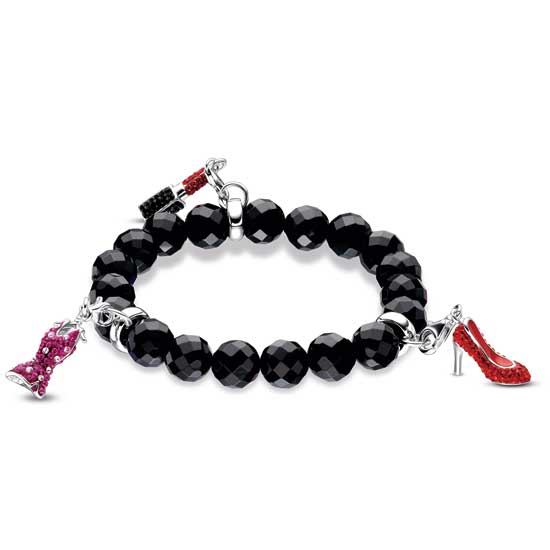 The finely crafted silver bracelet features innovative design and fashionable style. The bracelet is beautifully adorned with 10mm black onyx with three charms. The fancy bracelet may be greatly suitable to women.