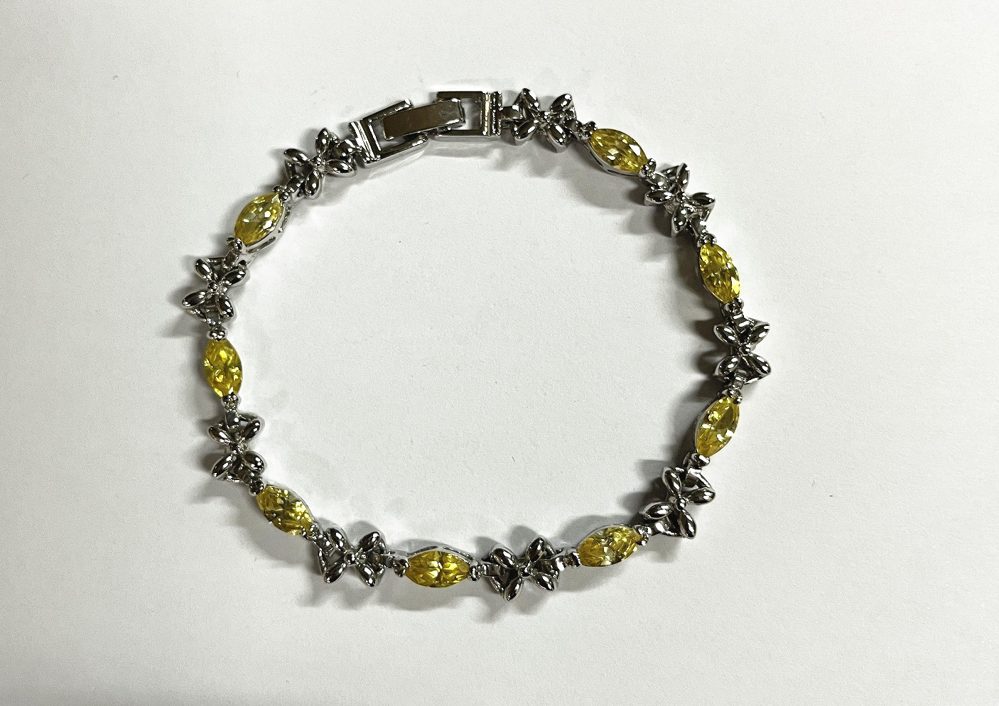 This ladies' bracelet offers a timeless yet modern look with its elegant design. The yellow faceted stones add an opulent touch, and combine perfectly with the silver-tone chain.
