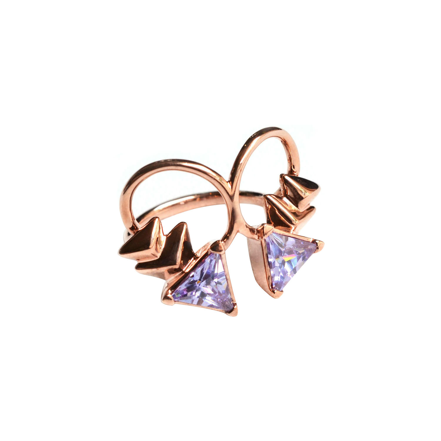 Adorned with purple multifaceted cubic zirconia stones in triangular shape.