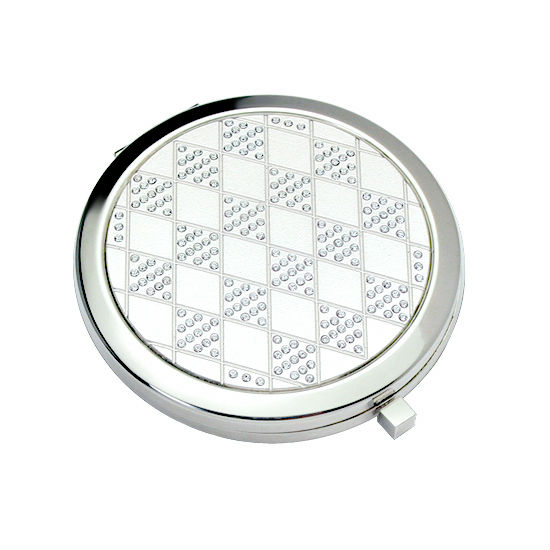 Silver Checkered Compact Makeup Mirror Case