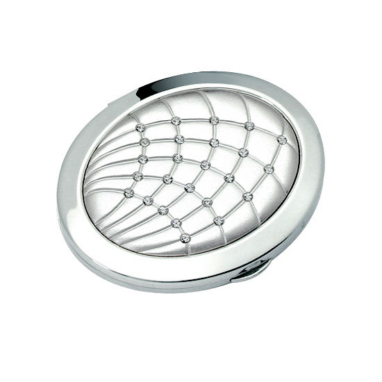 Pattern (horizontal & vertical curves intersect to make a net, white crystals at each intersection.)