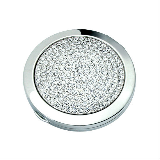 Shiny Nickel Plated with white crystals in different size circles to cover the whole surface