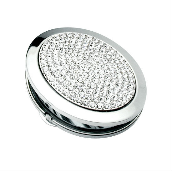 Shiny Nickel Plated with white crystals in different size circles to cover the whole surface