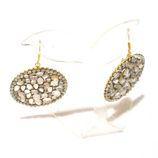 The pictured pair of earrings is in enduring silver. Each silver earring is embellished with brilliant semi-precious stones and cubic zirconia stones, presenting a brilliant shine. These sophisticated silver earrings complement your stylish wear nicely.