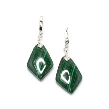 This is a pair of silver earrings with a stylish and fashionable design. The earrings are crafted with semi-precious stones for an elegant touch. This pair of well-designed earrings is great for complementing your chic look.