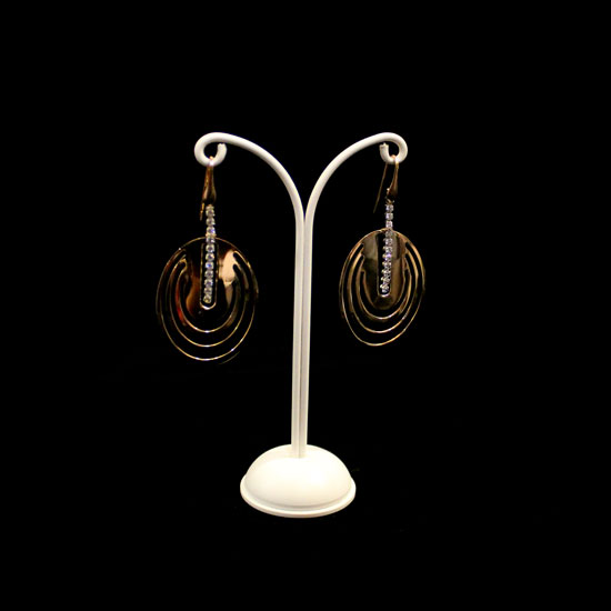 This is a pair of silver earrings with a fashionable appearance. The earrings are crafted with sparkling cubic zirconia stones for a glamorous touch. This pair of charming earrings goes well with your outfits.