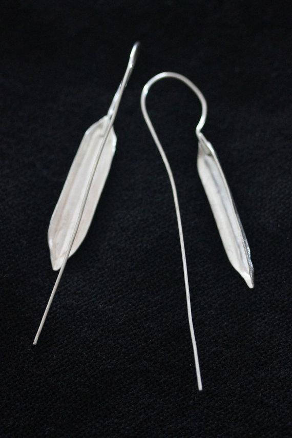 This earring is hand crafted in 95% silver by the Karen hill-tribe silversmiths. The shape is inspired by en empty rice husk, that cover the grains of rice, the Asian daily bread. The surface on both sides is etched to create a natural dry husk shell effect and is also embossed to create the grain veins on the upper side of the earring. The long hook is welded on the inner side.