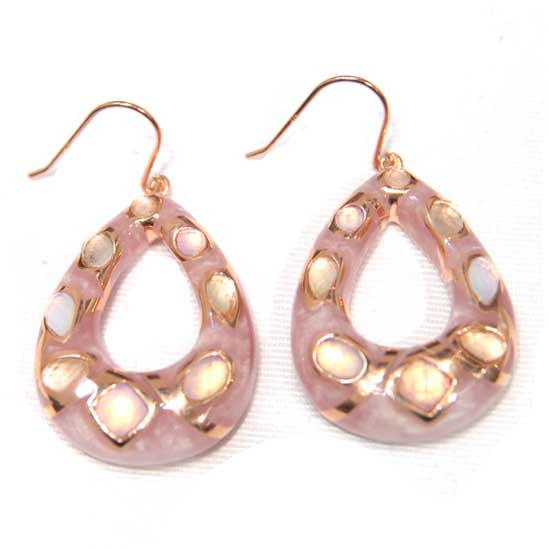 The polished earrings come in a tear-shaped construction with a cut-out design. They are constructed of high-quality silver with rose gold plating. These earrings are encrusted with colored resin stones for added style.
