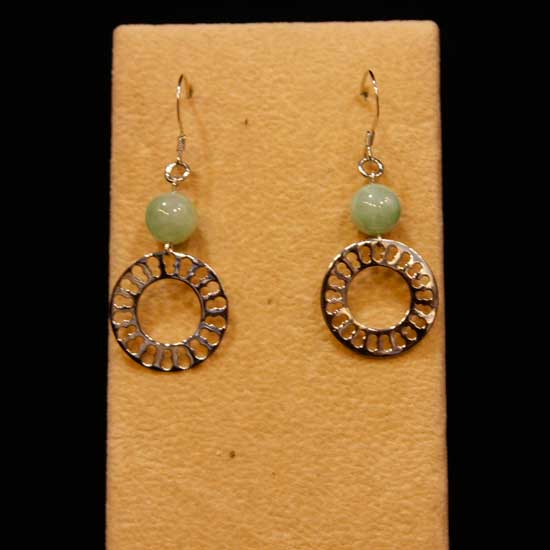 Introduced is a pair of earrings with a design that suggests oriental art. The pair highlights quality silver construction with an attention-grabbing jade on each side. This pair helps to style up your daily outfits with ease.