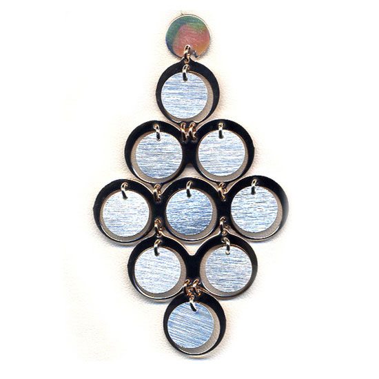 The earrings are made of quality silver for a deluxe appearance. They feature a rhombus-shaped design constituted by dainty circular accents. The earrings arrest attention with their distinctive design.