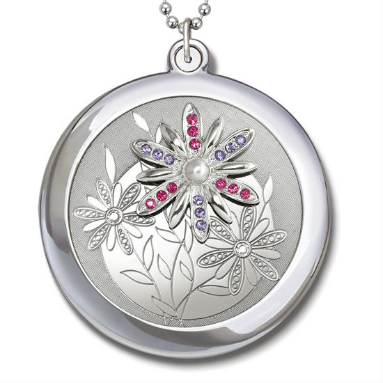 Embossed Flower pattern w/ Pearl, Purple & Pink color stones